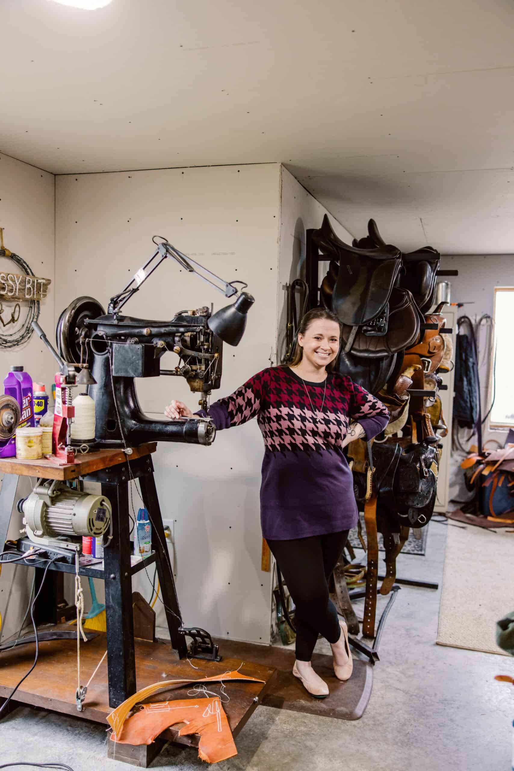 Hoards: leather, saddle making stuff, County Saddles, and unread text messages.