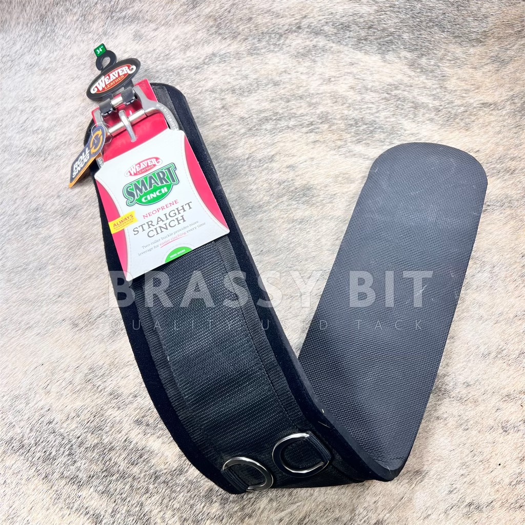 Here is a Nice neoprene straight Smart Cinch from Weaver, offered far less than retail. 34″, Â 5″ wide. New with tags, with snug roller buckle. Per Weaver: