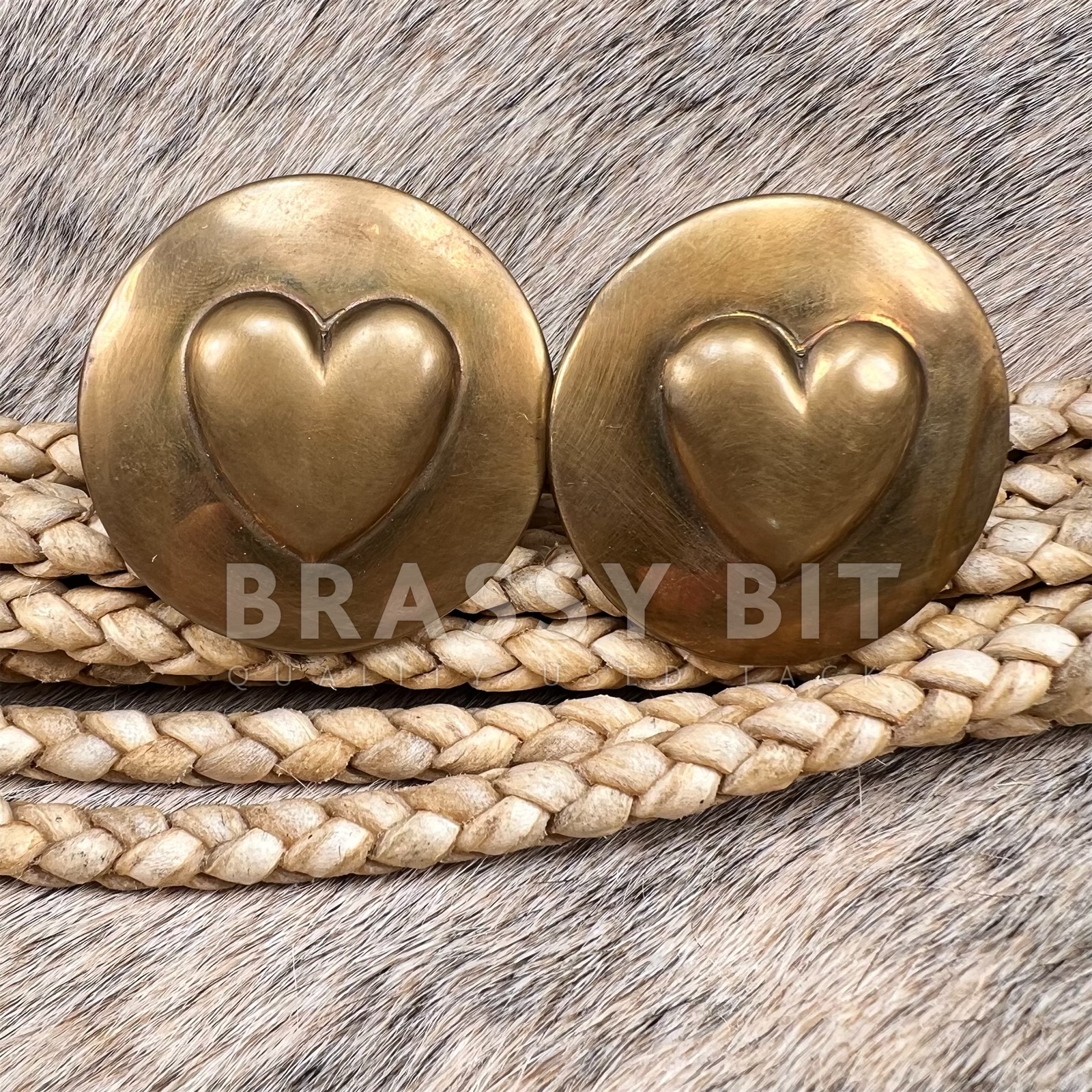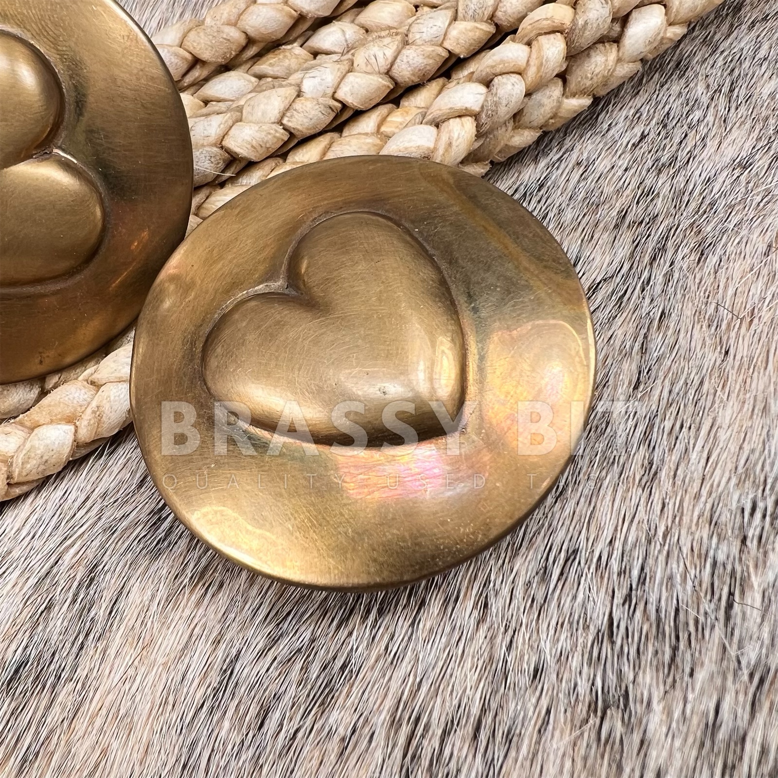 We cannot explain just how excited we are to offer this literal piece of art from famed bronze artist, Jonathan Moeller of Moeller Bronze. His work can be seen across the country, from breathtaking veterans memorials, to Jockey Club’s 3-year old series trophies, to the Arabian Horse Association championship trophies, US Team Penning championship trophies, and more. Made from cast bronze, with a beautiful natural patina. These rosettes have such a classic look, perfect for harnesses or bridles. We can all remember those heart shaped conchos of vintage harnesses. Here is a great, modern play on that. These are larger conchos, truly a statement piece. These are 2″ conchos with loop back, fitting a strap up to 7/8″ in width. Loop back is Vertical set. Comes as a pair. New! Back of the concho is signed by Jon Moeller. Use them or add them to a collection.