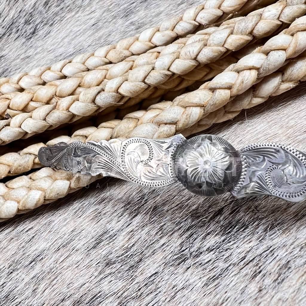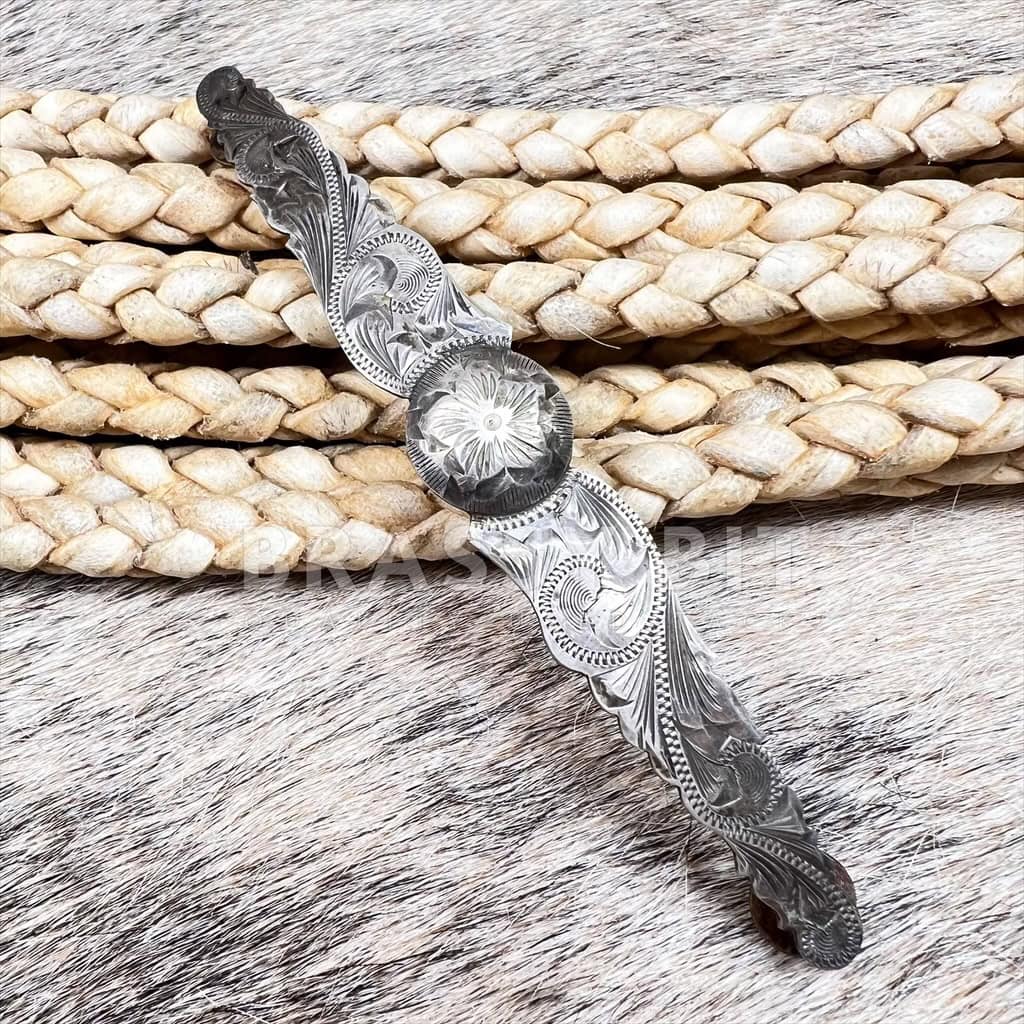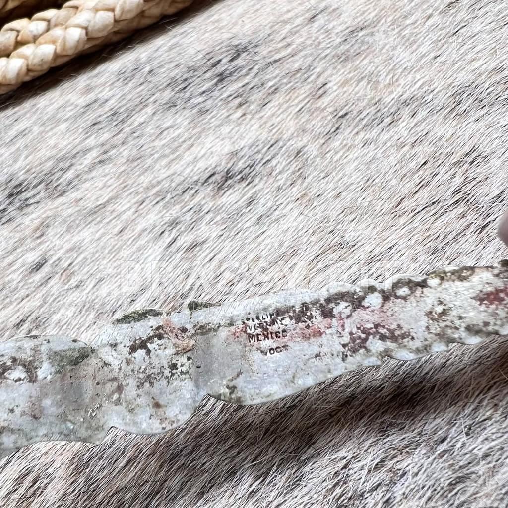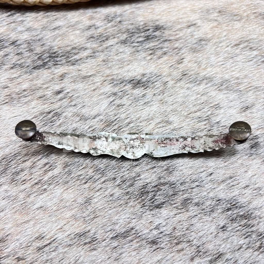 This is an INCREDIBLE vintage solid sterling silver plate that could be used in a variety of different ways. It would look amazing on a show halter or headstall! It is are marked sterling and Vogt, and show Vogt’s traditional engraving style that is very recognizable of high end tack of the early 1900s. With intricate engraving with raised center concho, with a star flower at the center. This iconic style is still highly sought after! Single plate that is slightly curved as it came off of a brow band. But does easily straighten or bend to more of a curve. Screw set, comes with screws. Given its age, it is in very good used condition, no major wear and no damage. Does show natural patina. Measurements: 4 1/2″ long x 5/8″ wide at widest.