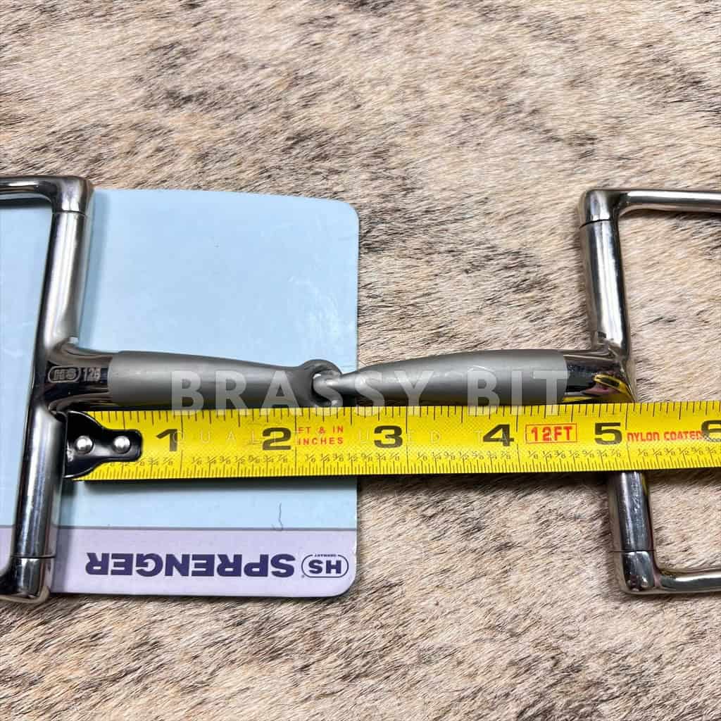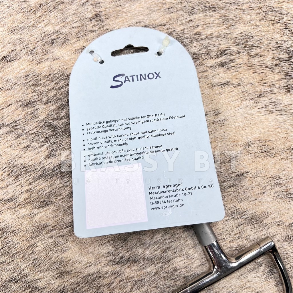 This is such a cool bit from Herm Sprenger, that is not only more affordable, it is designed with your horse’s comfort in mind. Satinox is a stainless, lightly textured mouth that is pleasant for your horse and promotes bit acceptance. Thinner diameter mouth at 14mm, hunter style rings, and mouthpiece has a nice contour that thins slightly towards the snaffle joint. New with tags/new old stock. This one is 125mm/5″ per tags, however, fits and measures true to 4.75″. We are advertising it as such. Per Herm Sprenger: