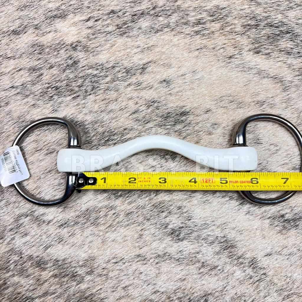Talk about a great, new bit that is way less than retail! From Trust Bits, the mouthpiece is made from Trust’s famed composite material, that is hardier than the original flexi soft bits, but still a great option for a horse who is averse to metal and wanting a more stable bit. In fact, these bits have become a popular alternative to a Herm Sprenger Nathe, as they offer the same, metal free alternative but are more durable. We love them! Per it’s tag, this one is a 5.25″/135mm with 20mm diameter mouth. New, never used. Calling this one New Without Tags, as it still has its small tag, but is missing its larger tag. May show a mark or two from storage, but has never been used. Lower/wider port for ample tongue relief without correction while still offering the stability of a mullen/solid mouth bit. Eggbutt snaffle cheeks. Offered for less than retail and without the hassle (and cost) of importing!