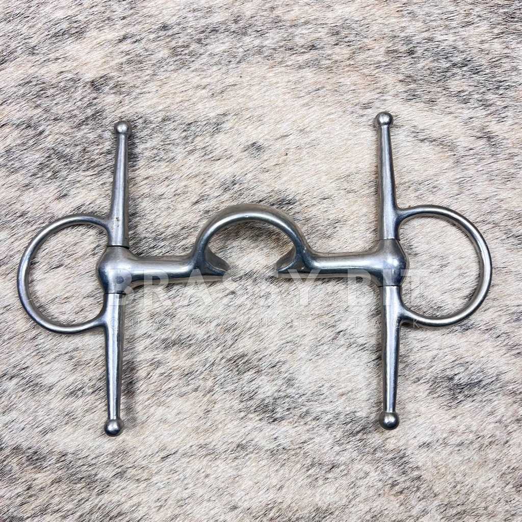Lightly used 5″ Segunda full cheek. The Segunda port is a correction port, which is set at an angle from the mouth, to offer some palate engagement and tongue pressure with rotation. Standard length full cheek sides at 6.25″. Thicker diameter mouth. Not branded, but nice quality bit.