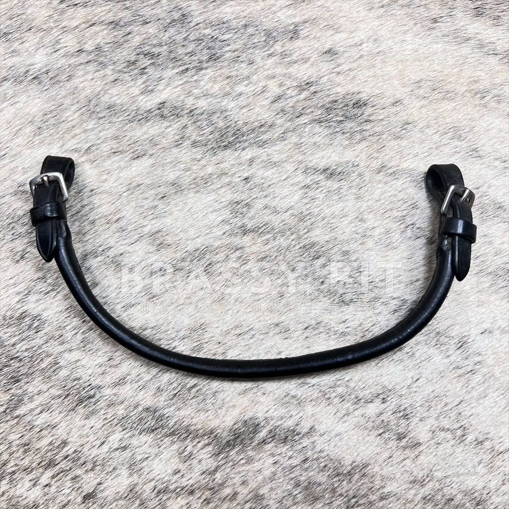 We feel like this piece of tack has many names. O’ crap handle, grab strap, Ooo s**t handle. Whatever you call it, these things are handy! This one is in thinner diameter rolled black leather that is easy to connect. Bit longer than many grab straps. This connects to an English/Dressage saddle’s d rings to give a nice handle, just in case. Not branded, but very nice quality leather. In very good used condition.