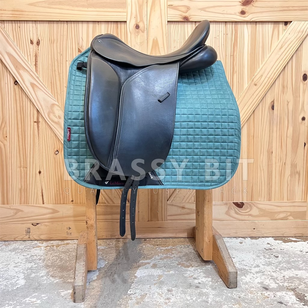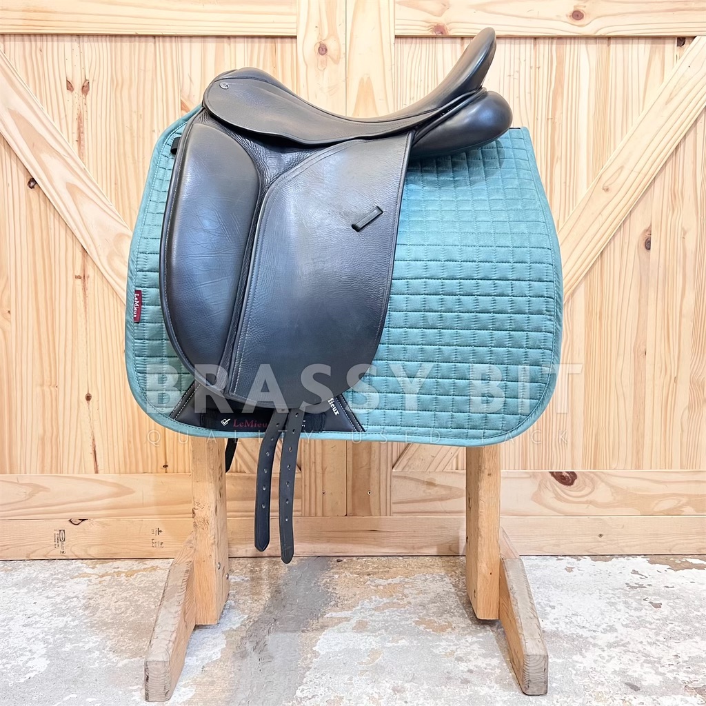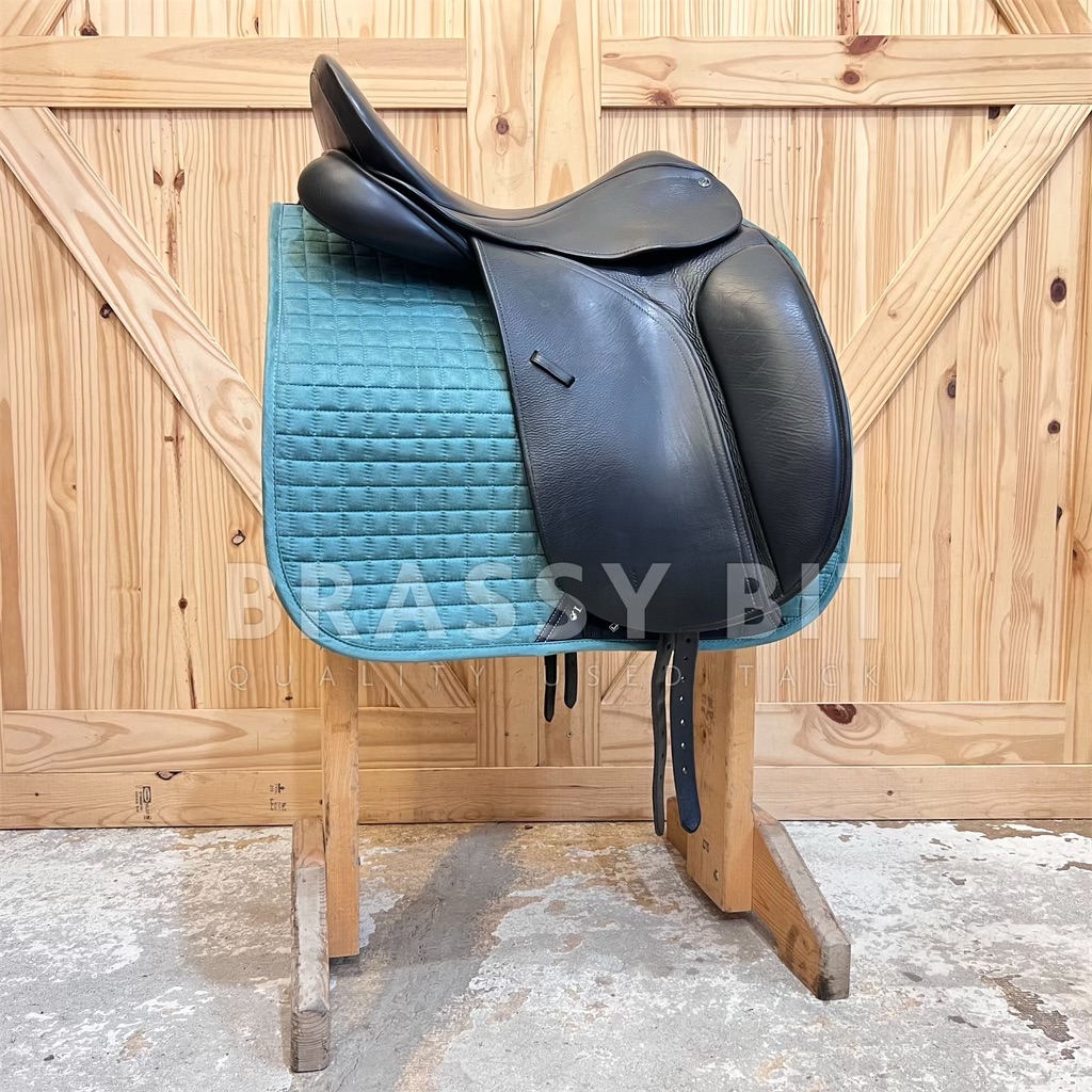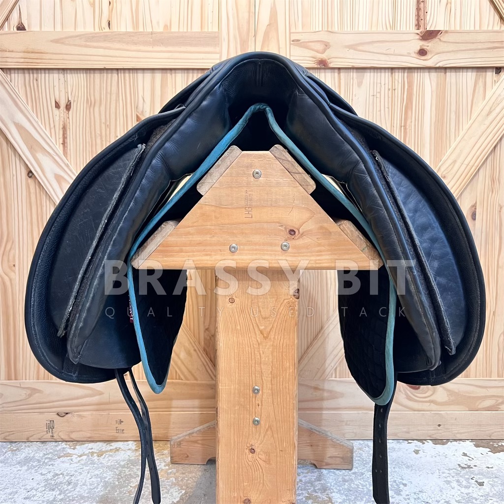 This 17.5″ Perfection by County Saddlery is nothing short of perfection! This saddle is in great used condition and at a great price! Super sticky full grain bull leather, narrow twist, and has been meticulously maintained. Per the flap, this is a Medium, fitting true to that measuring 4.5″, offering ample wither clearance with a more “A” shaped tree. Has shorter tree points with a curvier tree, fitting a horse with a well spring rib cage and stronger wither well. All wool flocked for even more adjustment, offering a bolder rear gusset at 3″, lots of channel width, and a shorter panel at just 19.5″. 17.5″ per serial number, however, this one fits a generously. Special ordered with long flaps that measure 17″. The Perfection has a more forward flap, which is great for a rider who finds themselves putting their knee at the very edge of the knee rolls. Often, the higher end saddles don’t have adjustable blocks. This one does! It has a velcro full flap patch to place knee blocks on. This one comes with a long/moderate block. This is a 2016 model saddle and has been incredibly well cared for and recently went through a total refit. Has brand new billets and brand new wool flocking. Has a quasi point billet currently set, with tabs to have a straight front billet attached if needed. The leather on this saddle is BUTTER soft. This saddle shows far less than normal wear, hardly a mark on this saddle and clearly has been incredibly well cared for. You won’t find many on the market in this condition. This is a lovely saddle, ride in it and you will see why County saddles are so popular!