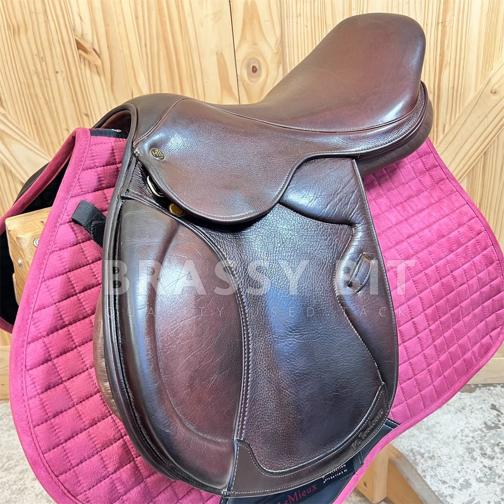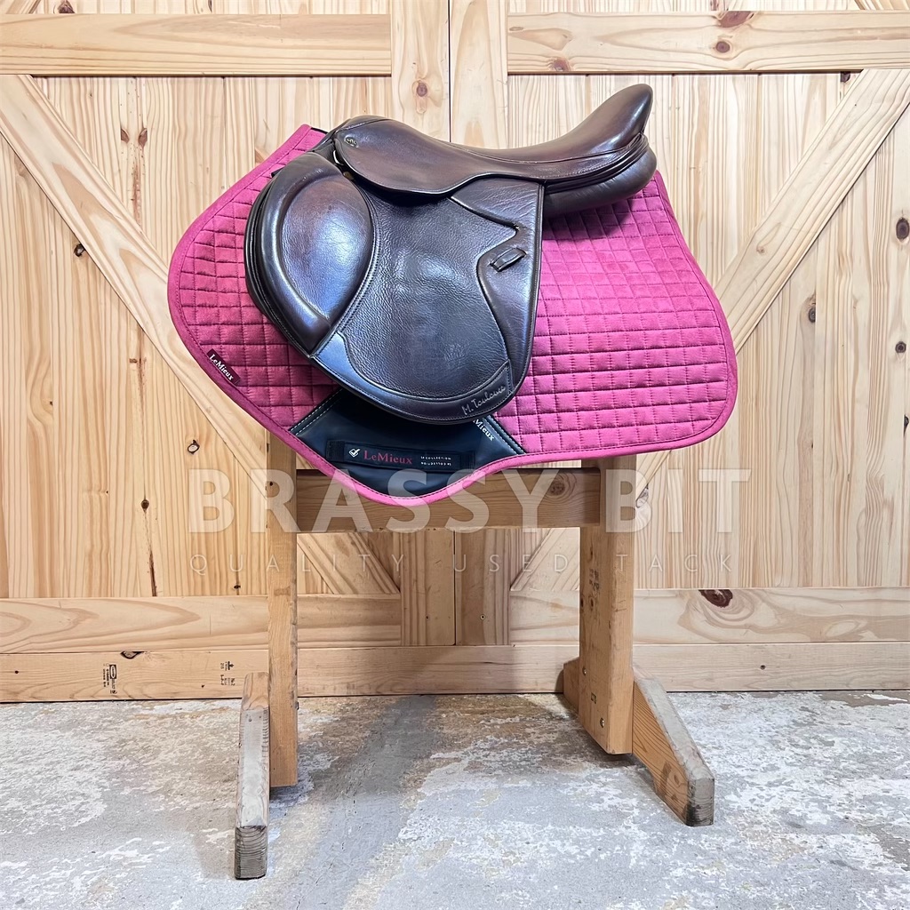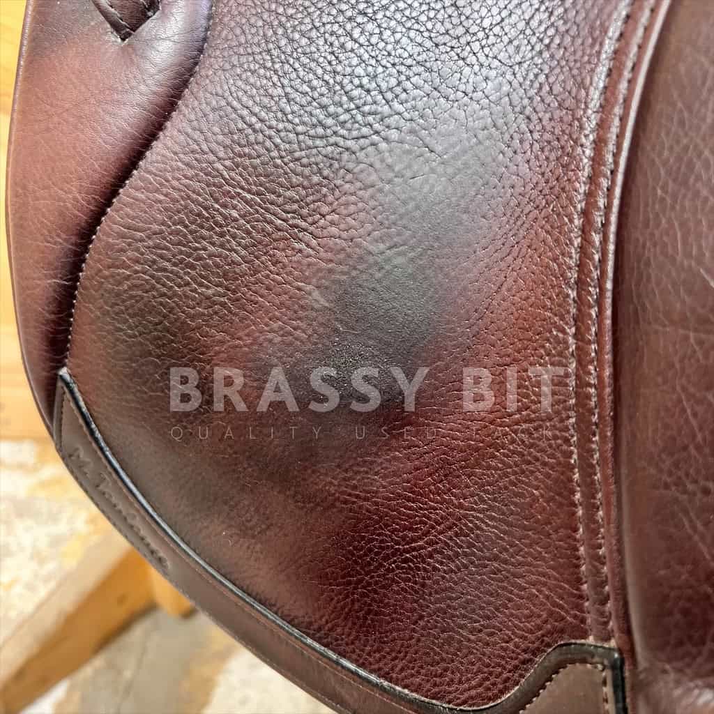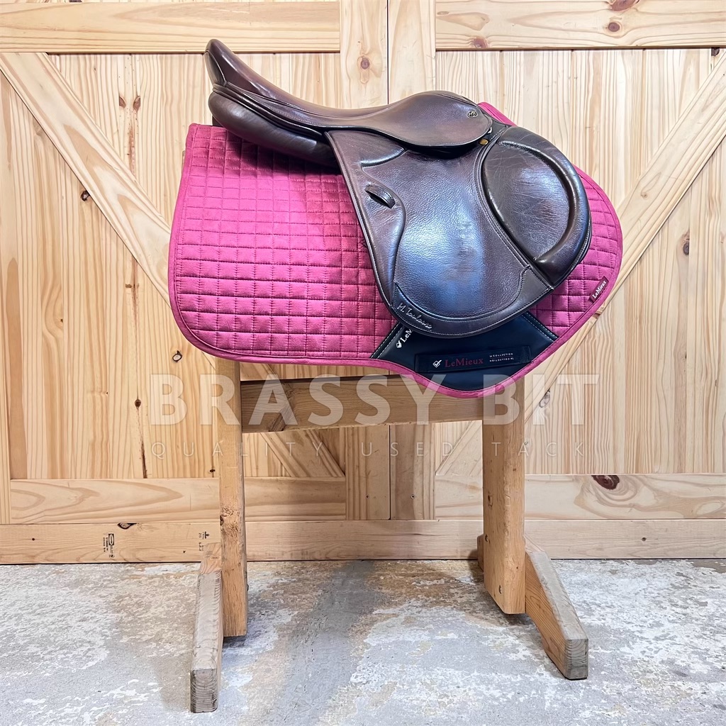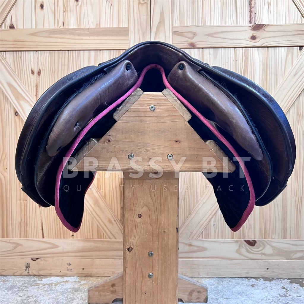 Here is the absolute perfect English saddle to upgrade to. One that is perfectly welcome in the local or breed show ring while still being incredibly affordable. This lovely saddle from M Toulouse was designed by builders who’ve worked with the high end French brands for decades, resulting in this high end look with super grippy calf leather. It both looks and feels swanky! This one is stamped 17″, but measures and fits true to 17.5″ with a more open, almost hunter style seat, very narrow twist and forward flap that measures 13″. The contoured knee roll and adjustable knee and thigh blocks help keep your leg secure. Per serial number, this one is on a Wide tree, fitting true to that with the gullet measuring 5″. Offers a wider channel and a bit of a curvier tree. Very short panel at just 18.5″-this will work for ponies too! This saddle has been very well taken care of. The leather has clearly been oiled often, darkening to a rich chocolate brown and is so darn soft. Shows less than normal use-does have a small bit of superficial stirrup leather rubbing on offside flap. This lovely saddle is both fancy and comfortable. Get this nice, quality used saddle for less than half of its retail price!