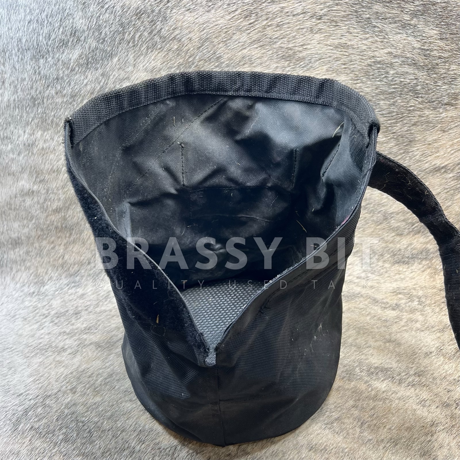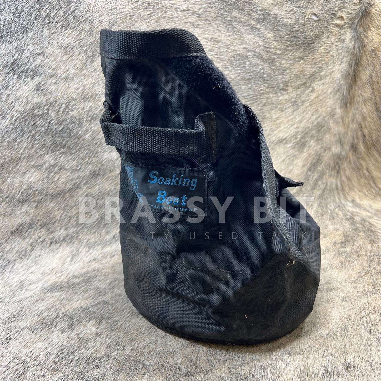 Here is a great addition to your stable gear and equine pharmacy! Lightly used soaking boot from GiddyAp Girls, with a heavy rubber bottom, heavy canvas sides that hold water, with heavy velcro closure at the top. Much taller than many boots, making this a great option for treating lower leg issues as well as hooves. Honestly, doesn’t look to have been used at all, but is dusty from storage. Water proof, easy to use and close, insulated, and extra grip on both sides of the foot bed for security and to limit slip.