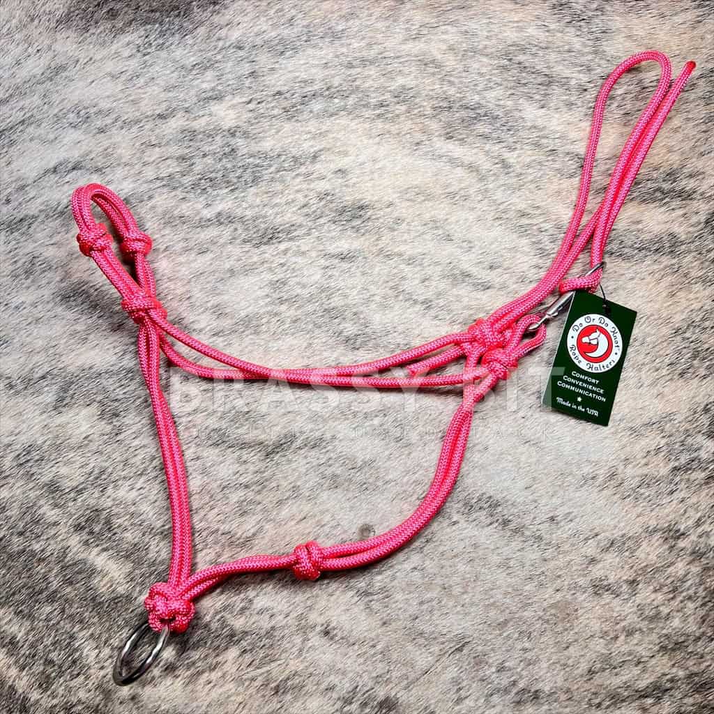 We just LOVE these halters. Do or Do Knot (DODK) halters are made with the best materials, by the best human, and are Minnesota Made! New with tags in bright pink. With chin ring and quick snap, making this halter easy to put on without having to worry about a halter knot. Has knots over the nose just like your favorite clinician style halters. Size Medium (Full/Average Size Horse). 24″ nose, 10-11″ cheek, 20-21″ crown. Is designed to have some adjustment to snug it up around the crown and cheek.