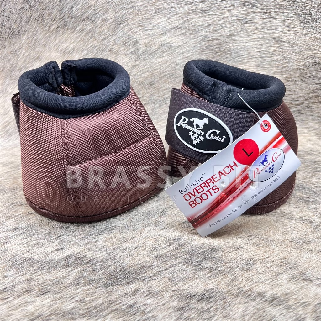 New with tags, in chocolate brown, heavy duty ballistic no turn bells from Professional’s Choice. Heavy reinforcements on the outside with good velcro. Very affordable, durable bell boots. No turn with chock absorbing lining that protects the whole hoof well. There is a reason these boots are so popular!