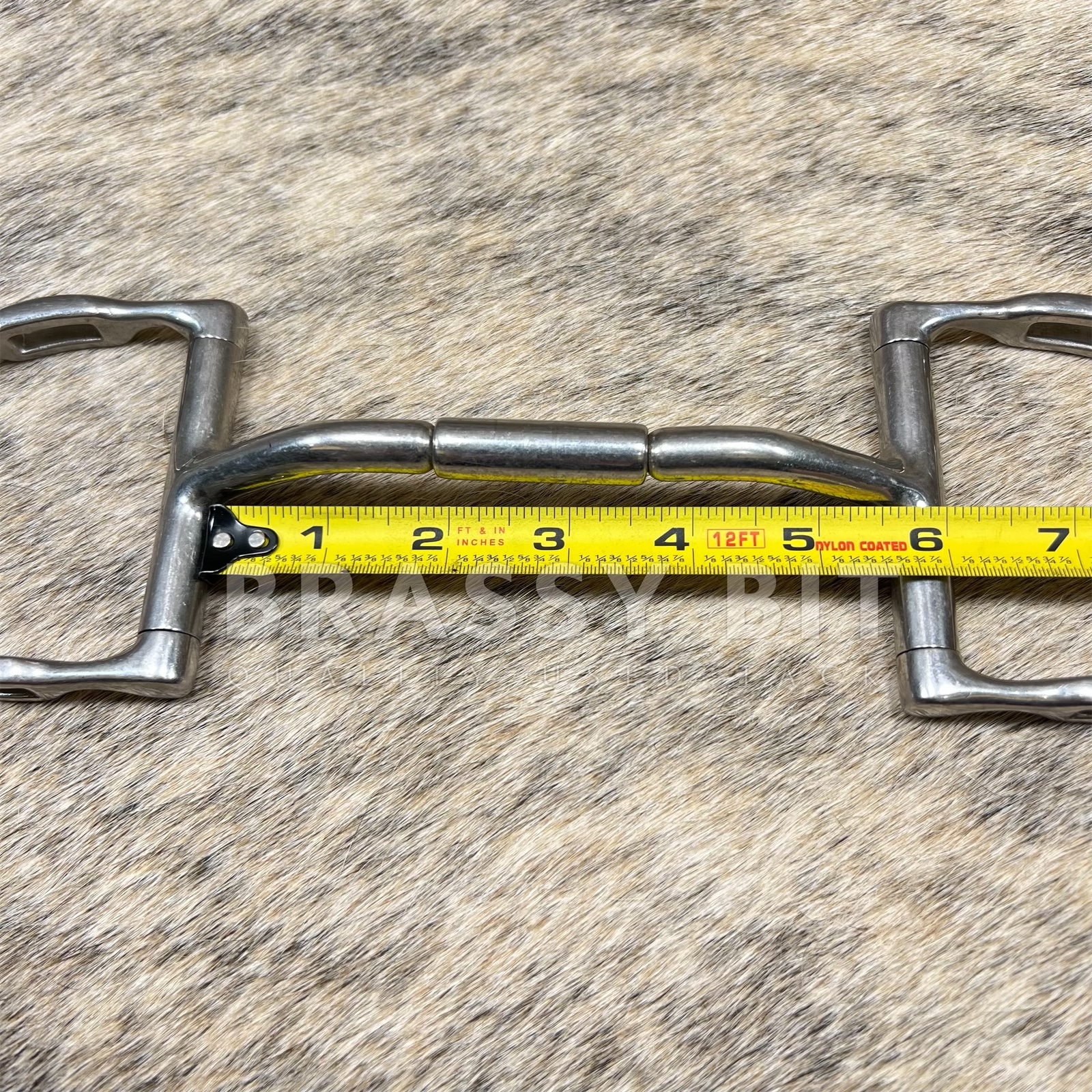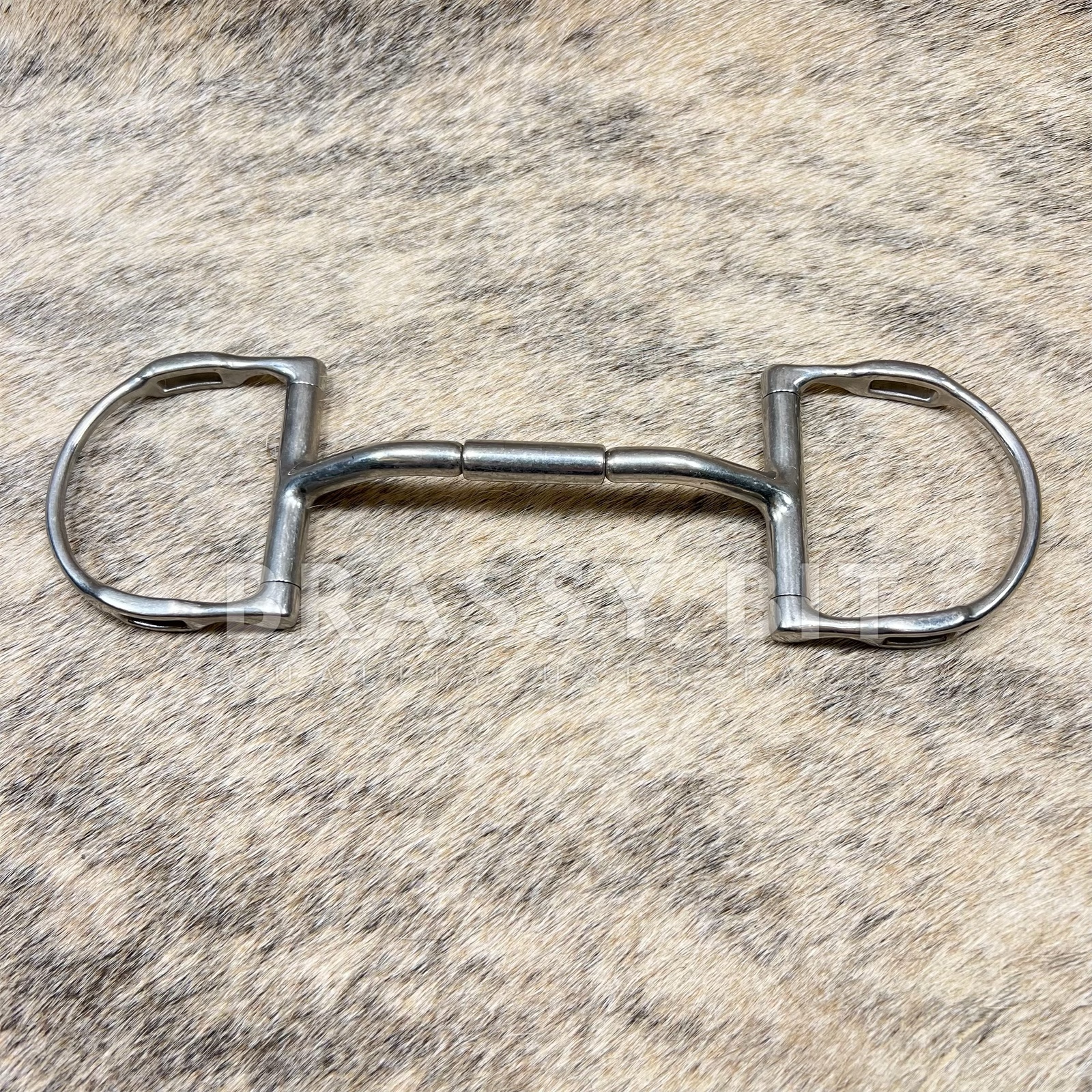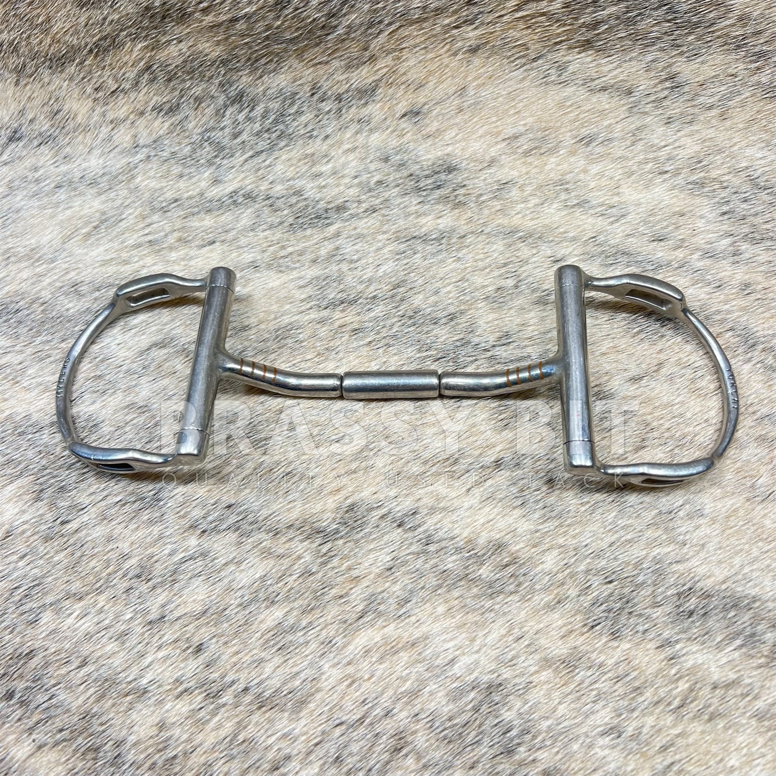 Very good used 5.5″ Myler D Ring Mullen Barrel Comfort Snaffle (MB32). This is a very popular option for horses who need the stability of a mullen mouth and who don’t care for the nutcracker effect of traditional snaffles. D Ring, with slots (hooks). With the slots in the cheek pieces rather than outside make this one that can be used like a sliding gag bit, an older and very popular style for the hooks/slots. Per Myler: