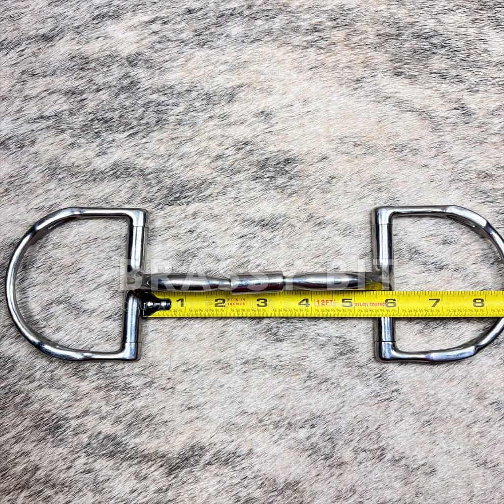 Very, very lightly used 5.5″ Myler D Ring Comfort Snaffle (MB02). This is the older style MB02, with the thinner diameter mouth. This is a very popular option for horses who need the stability of a mullen mouth and who don’t care for the nutcracker effect of traditional snaffles. D Ring, with hooks. Nice, larger size mouth at 5.5″. In excellent, lightly used condition. Per Myler: