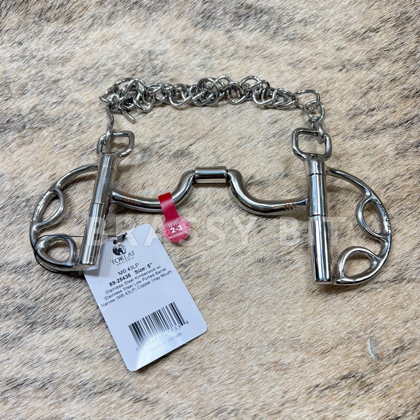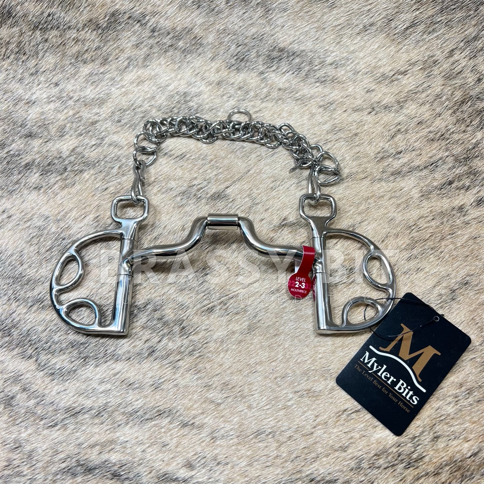 Here is a hard to find Myler MB-43LP Low Narrow port Kimberwick, with chain. This 5″ bit is in new with tags! In one of Myler’s most popular mouth style, which gives ample tongue relief with a bit of correction. 5″ mouth, contour, stainless steel, with copper inlays to promote salivation. Per Myler: