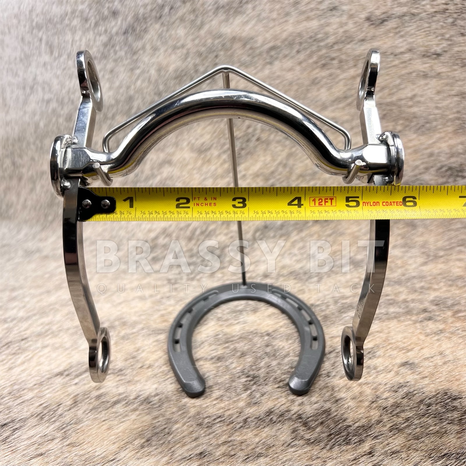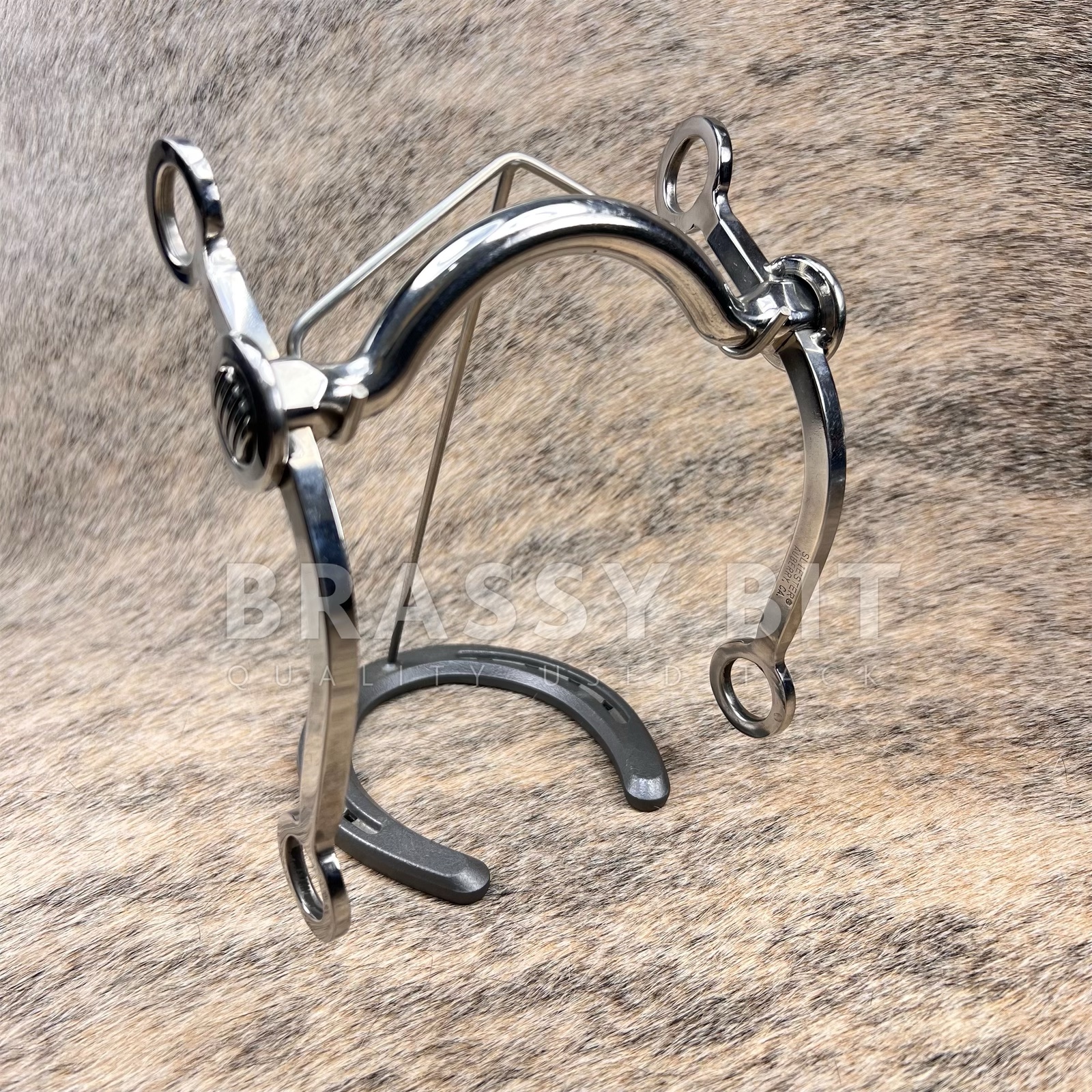 These bits are so cool! Talk about custom quality! Sliester bits have a long lasting reputation in the western world for being quality, long lasting, and attractive bits. This bit is one of Sliester’s Slimlines, in the #60 C-Shank, short shank that measures 7″. Forward set sweet water mouth, which gives ample tongue clearance without too much correction. Very stable and well balanced bit. In excellent, hardly used condition. Cowhorse legal! Show ready! This one will last into the next generation!