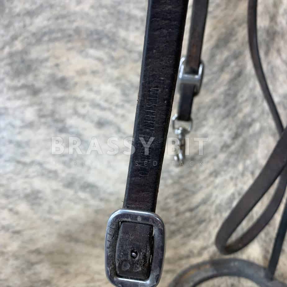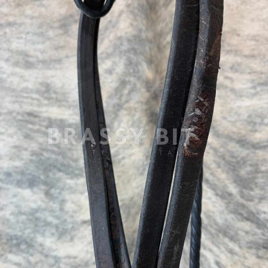 Nice pair of used, heavy duty roper rein from Western Saddle Co. 50″, as measured from end to center. One scissor clip, adjustable with Conway buckles. These have seen plenty of use, have some blemishes from use, but are made from nice heavy leather, and are very affordable, and you’ll get more use out of them.