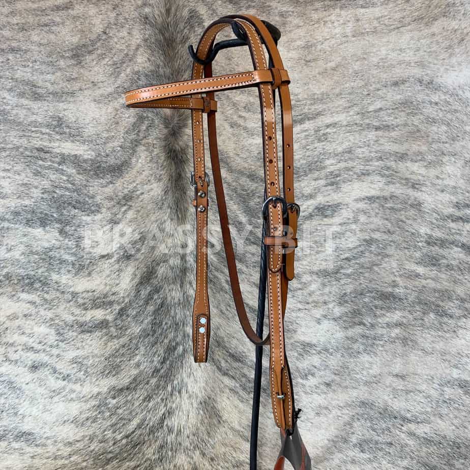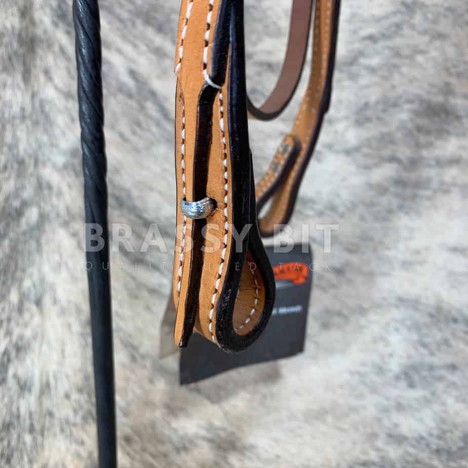 This headstall is a great quality, elegant piece of using tack from Circle Y. New with tags, from Circle Y’s newer line of tack, made from great leather quality with a great look. In light/pecan oil, horse size with great adjustability, with browband and throat latch. This one is unique, as yes it is a quick change, but is a quick change with leather tab and silver keeper, making this one so usable but with a refined, classic look. Great price for a great headstall!