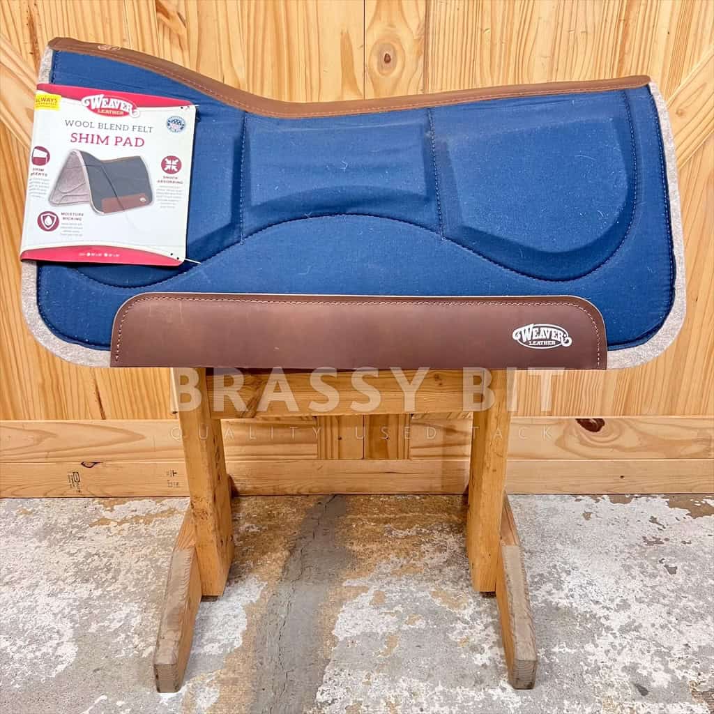 Weaver Leather Wool Blend Felt Shim Pad This shim pad is made from a moisture-wicking wool blend felt that naturally moves sweat away from your horse. The removable EVA foam shim inserts included correct saddle fit and conformation issues. The shock-absorbing contoured pad shape provides superior protection for your horse, while allowing close contact for increased feel between you and your horse.
