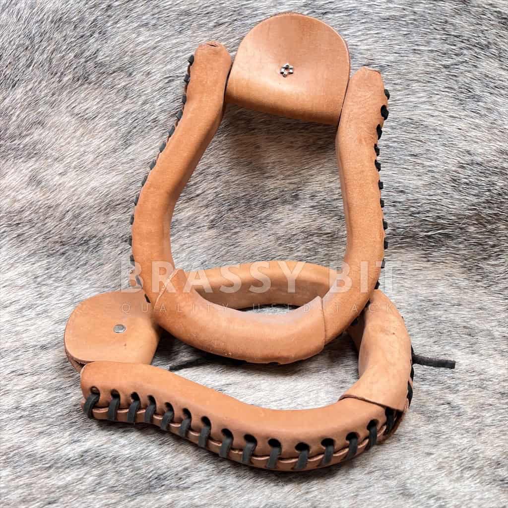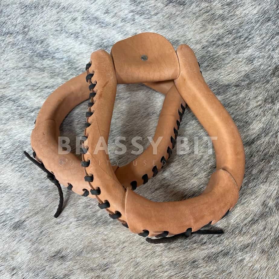 These are a nice set of stirrups, perfect for a working saddle. These are new without tags, never been used, and have a great look to them. These came off of a Dakota saddle, but aren’t branded, which isn’t unusual for stirrups. Only ‘wear’ to note is that they had a price tags on them, and that spot is a bit lighter than the rest of the leather. These aren’t weighted, but aren’t terribly light weight. 4″ bottom (measured where the foot falls), 3″ top. Nice set here!